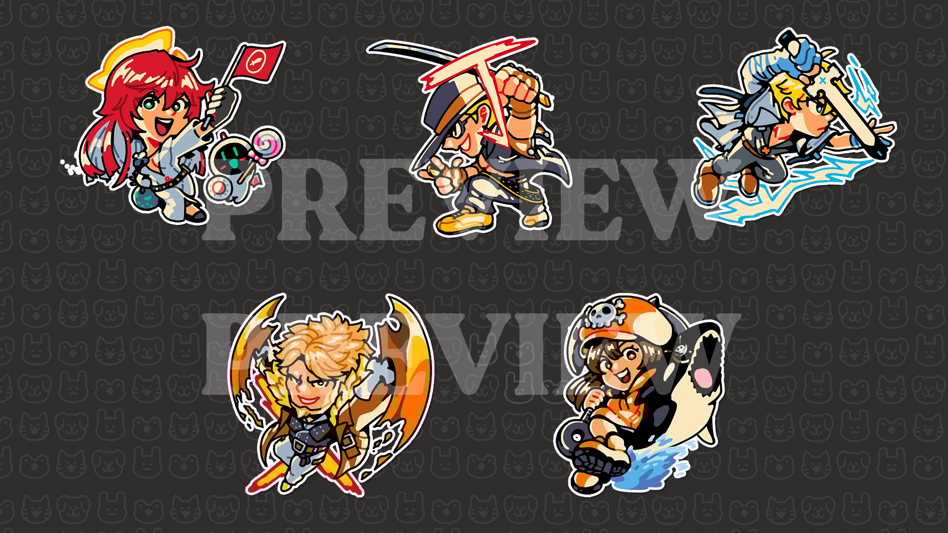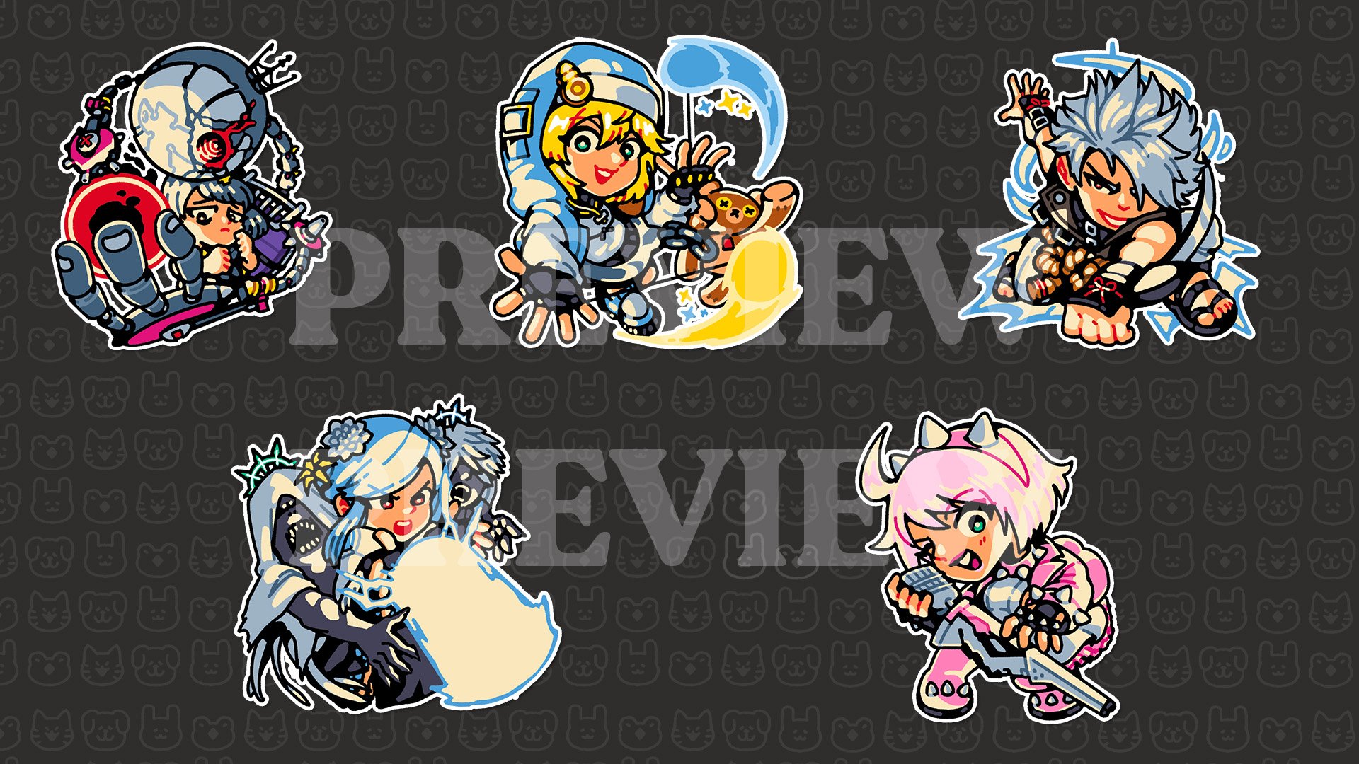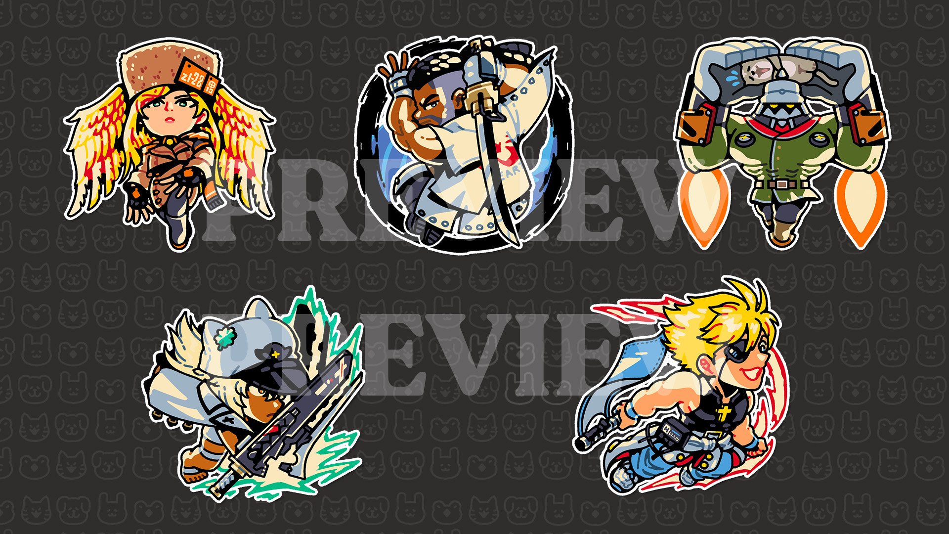 3" glossy stickers depicting various characters from Guilty Gear Strive.